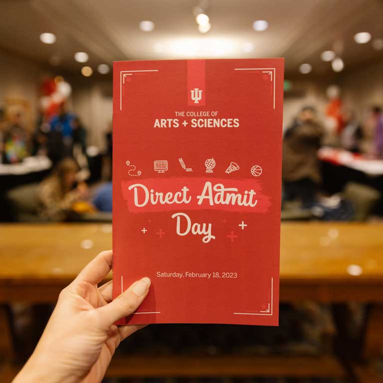 The IU College's Direct Admit Days celebrate the achievements of our Direct Admit (DA) students. These invitation-only events introduce our DA students to department faculty, connect them with future classmates, and offer a personal glimpse into future campus life. Families are welcome at these events.